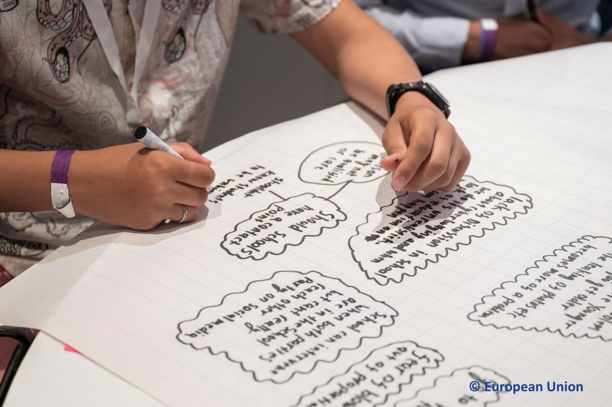 After that, we split into groups to work on the main topics together with adults from the European Commission and civil society organisations.